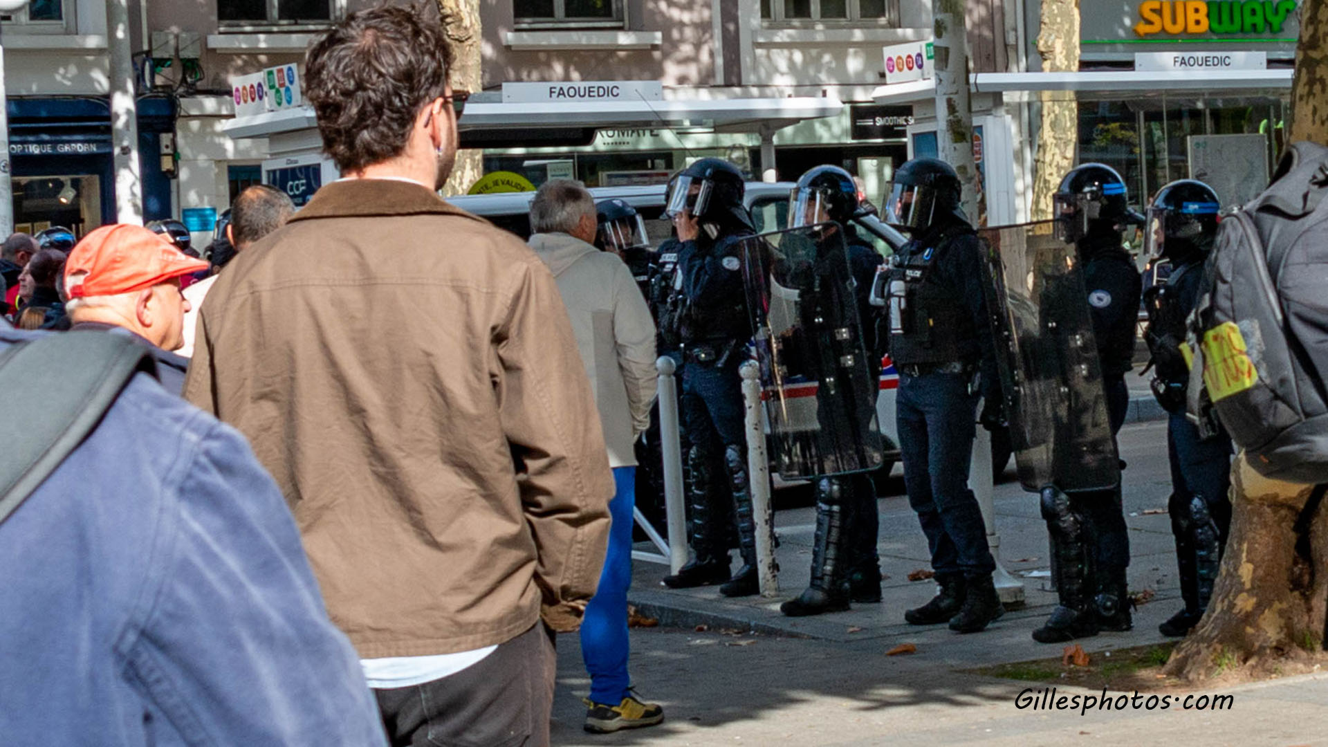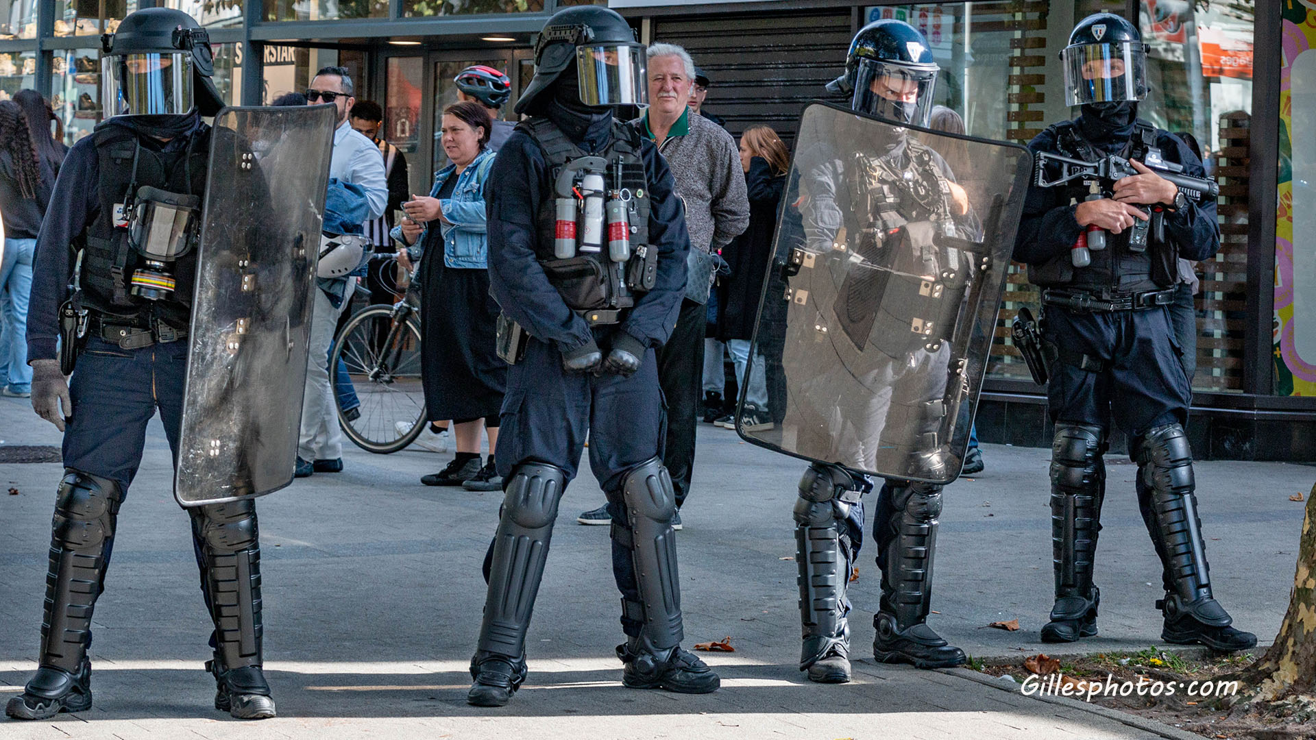 Place aux prises de parole sur la place Glotin, à Lorient. "Aucune société juste ne peut se construire au détriment des femmes" ; "La croissance des aides versées aux entreprises a été trois à quatre fois plus importantes que les aides sociales". Les lieux se sont ensuite vidés. Le barrage de police, place Aristide-Briand ne passe pas : "Cela fait 20 ans que je suis représentante syndicale, jamais on ne m'a opposé un bouclier en manifestation". Ils étaient environ 3 000 ce jeudi 2 octobre selon les syndicats, 1 500 Selon la préfecture du Morbihan.